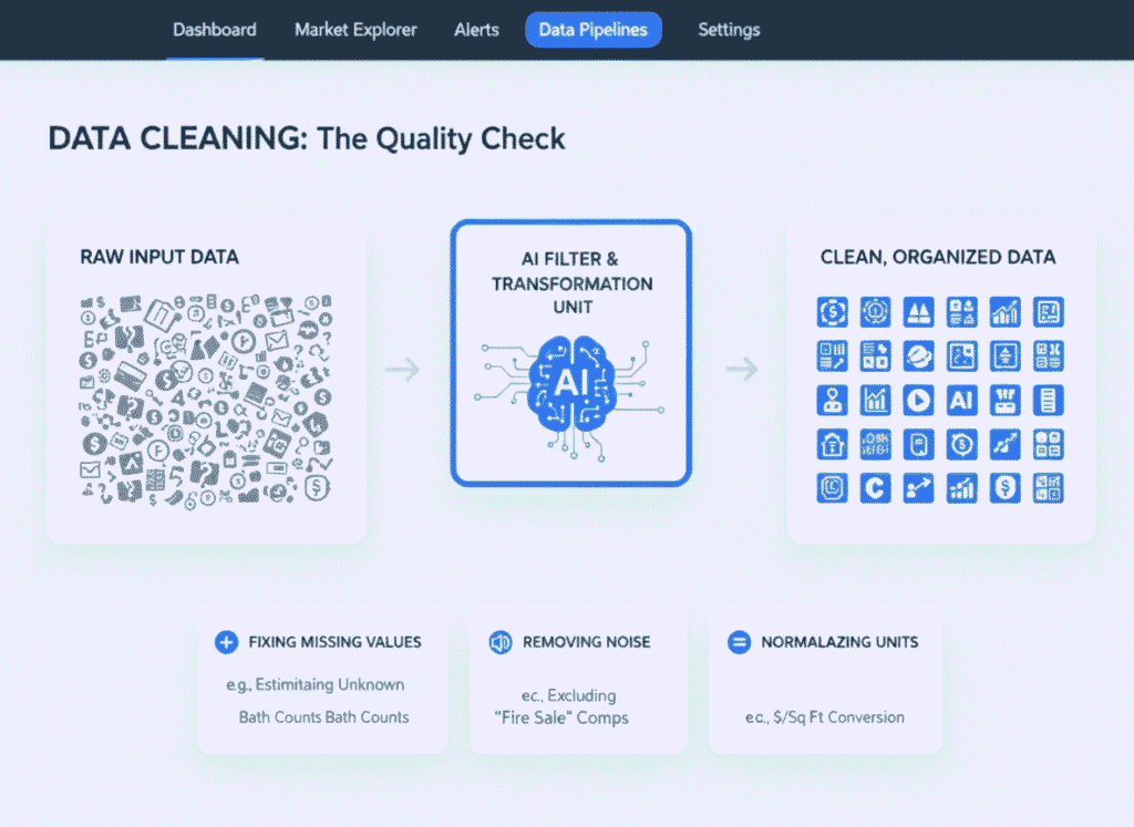 - The AI fixes missing values (e.g., estimating an unknown bath count).